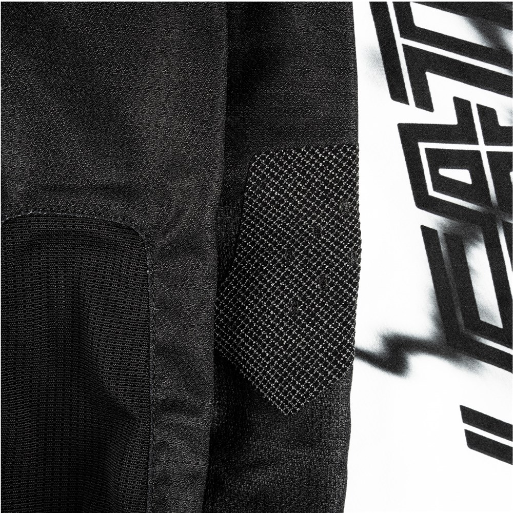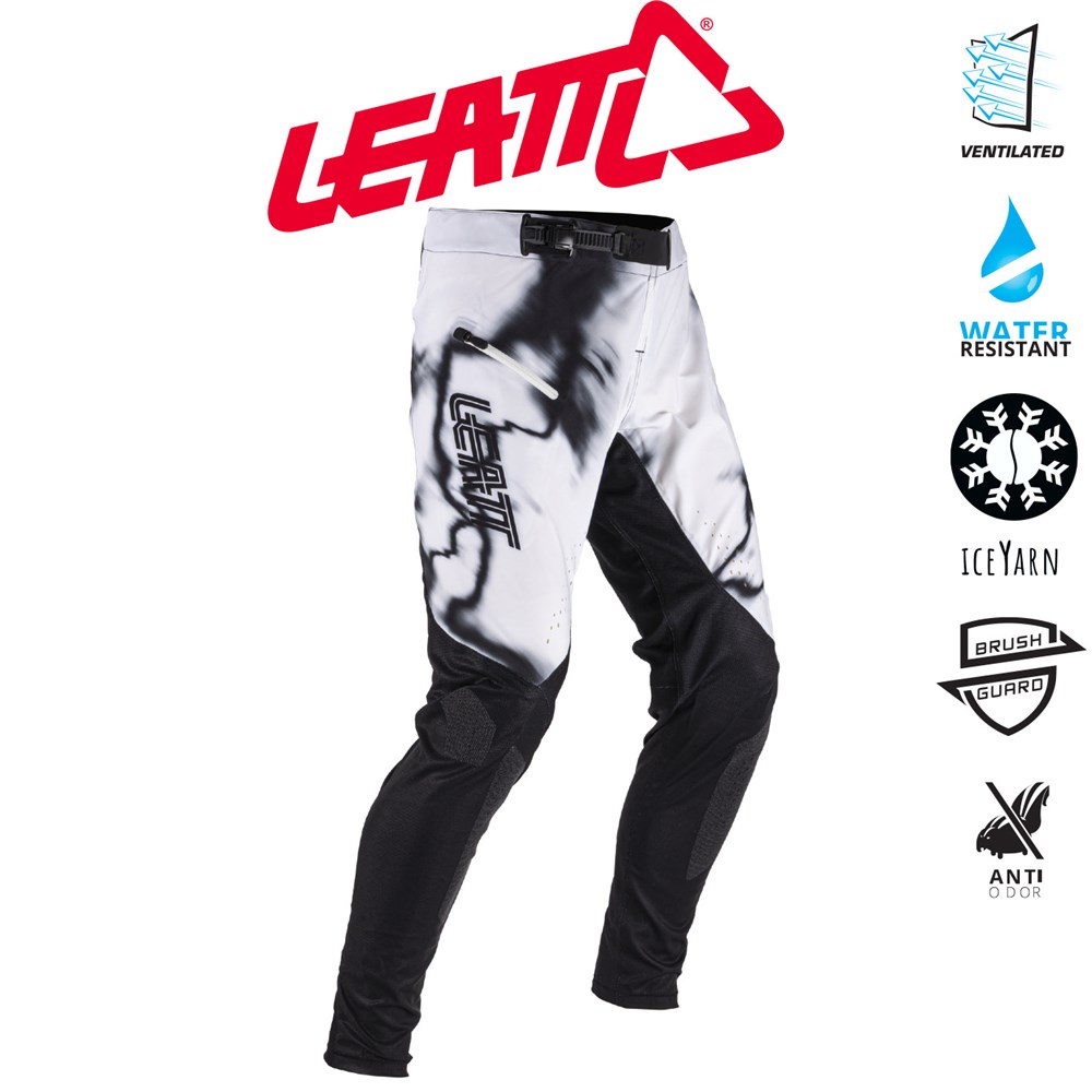FABRIC: - Lower leg area combination of CoWeave & Deflextion Technology, which is a custom programmed 3D-knit, with seamless transitions into ventilation areas as well as reinforcement areas (even the Leatt logo is part of the knit)