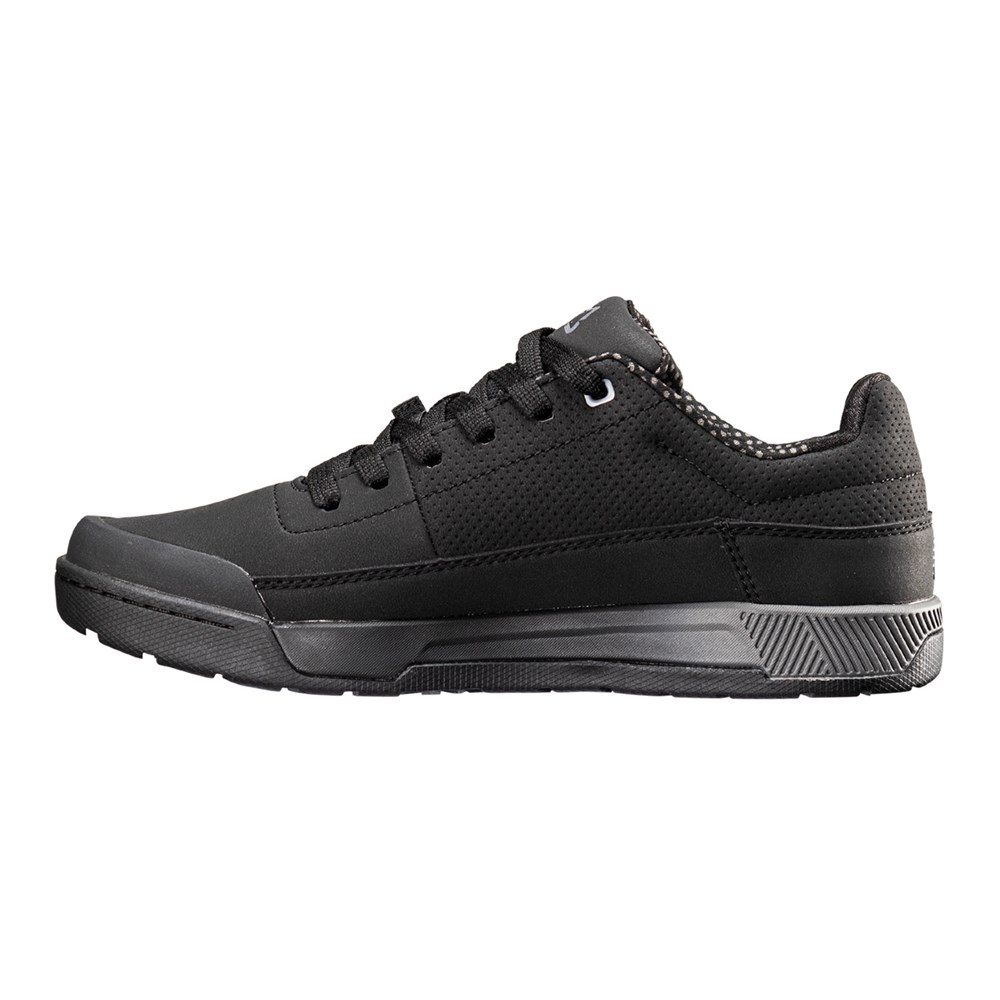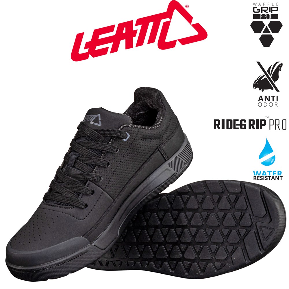 The  Leatt MTB 2.0 shoe is a casual looking shoe transformed into a comfortable and well-ventilated riding shoe. It features a medium stiff sole, which gives you great control on the bike but lets you also walk around in ease.The amazing RideGrip rubber compound provides ultimate bike control in all weather conditions. The sole also features mud channels which efficiently keep the mud off the soles so that you are in constant contact with your pedals or the ground. Be prepared to ride, anytime, anywhere!