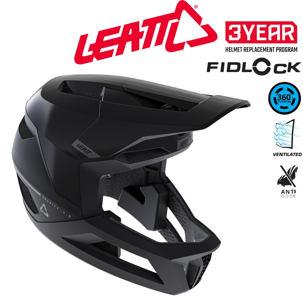 The Gravity 5.0 helmet represents the next evolution in Leatt’s helmet technology—engineered for full-throttle enduro racing and bike park days where fit, breathability, and confidence matter most. It’s the first full-face helmet to feature the BOA® FS2 Fit System, delivering a secure 360° wrap with micro-adjustable precision and dual-position cheek pads for a truly personalized fit. The lightweight thermoplast carbon shell keeps weight down to just 710g (size M), while Leatt’s advanced 360° Turbine EVO Technology enhances low-speed impact absorption and rotational force reduction as part of a 3-in-1 safety system. A removable mouthpiece cover lets you fine-tune airflow or block debris, and the included semi-transparent visor extension adds coverage on bad-weather race days. With a moisture-wicking liner, Fidlock magnetic buckle, and neck brace compatibility, the Gravity 5.0 is built for riders who want lightweight comfort and serious protection when every second counts.