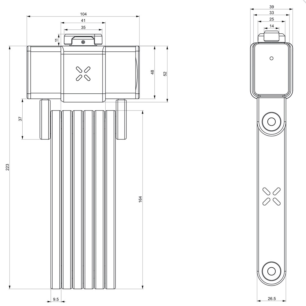 Engineered for modern cyclists, this ultra-compact, portable lock folds into a small form without sacrificing security. Unfolded, it secures bike frames and wheels to any stationary object, providing flexible protection in diverse environments. The included bottle cage mounting bracket is universally compatible for easy attachment to any bicycle frame.