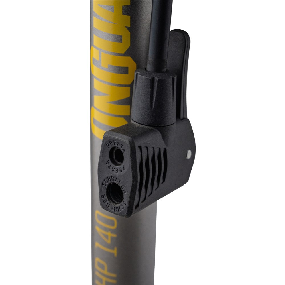 Capable of delivering up to 140psi, this floor pump ensures your tyres are always perfectly inflated for peak performance. This floor pump features a dual pump head compatible with both Presta and Schrader valves, providing versatility and ease of use. Its high-volume capacity allows for quick and efficient inflation, making it an essential tool for every cyclist. Built witha sturdy base and built-in compartment for the included ball needles, and an ergonomic handle for stability and ease during use. The integrated pressure gauge offers accurate readings, ensuring you can achieve the precise pressure needed for your ride.