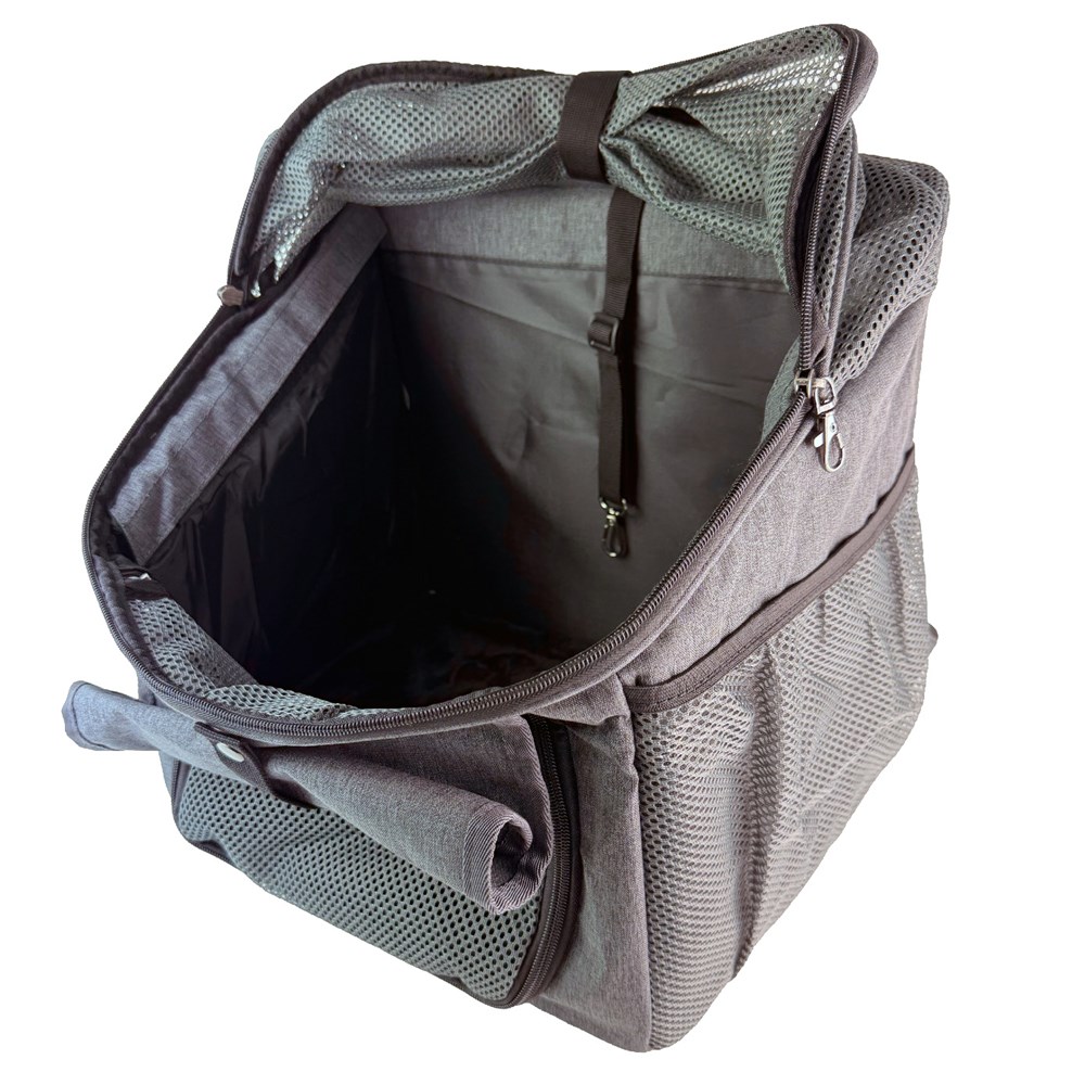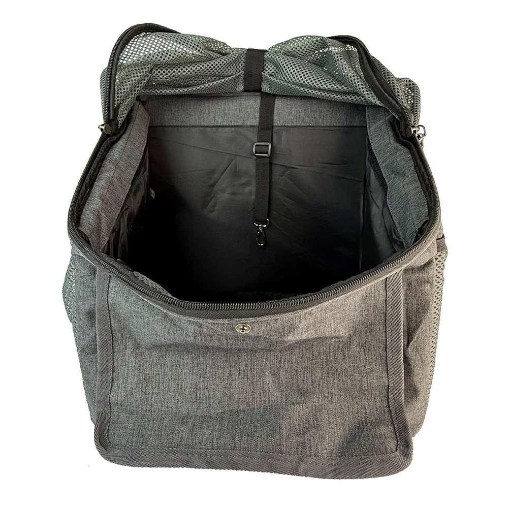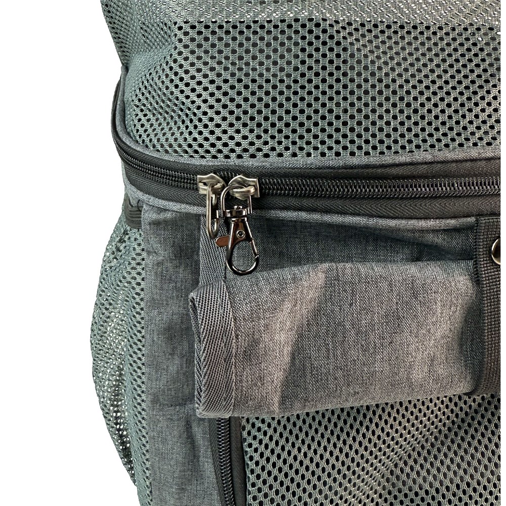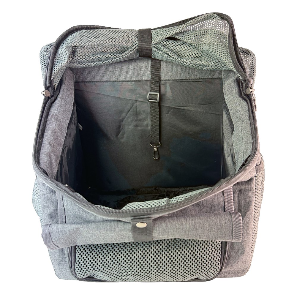 - Pet attachment clip inside carrier.