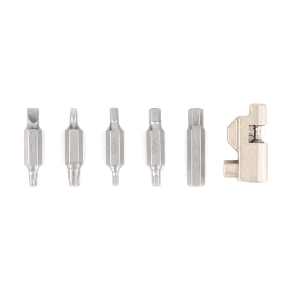 - Includes: Chain breaker + 5 nickel-plated bits (10 tools) + storage space for chain links
