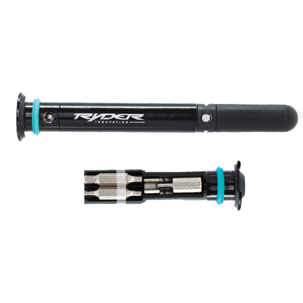 The In-Bar Groove tool features a chain tool, Slugplug Dual and a wide selection of common most-used tools on modern bicycles. Designed to store inside your handlebars, and doubles up as bar plugs.