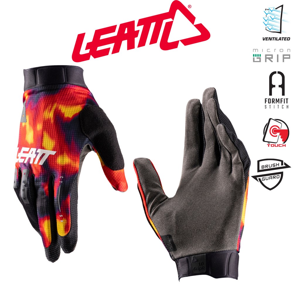 The MTB 1.0 GripR Gloves feature a lightweight but durable unpadded MicronGrip palm, giving a secure and confidence-inspiring grip of your handlebars. The palm is also very durable, despite its slim feel, and with a pre-curved shape and seamless construction offers a natural feel for your bars too. Leatt adds a silicone print, ensuring a non-slip grip in both wet and dry weather.