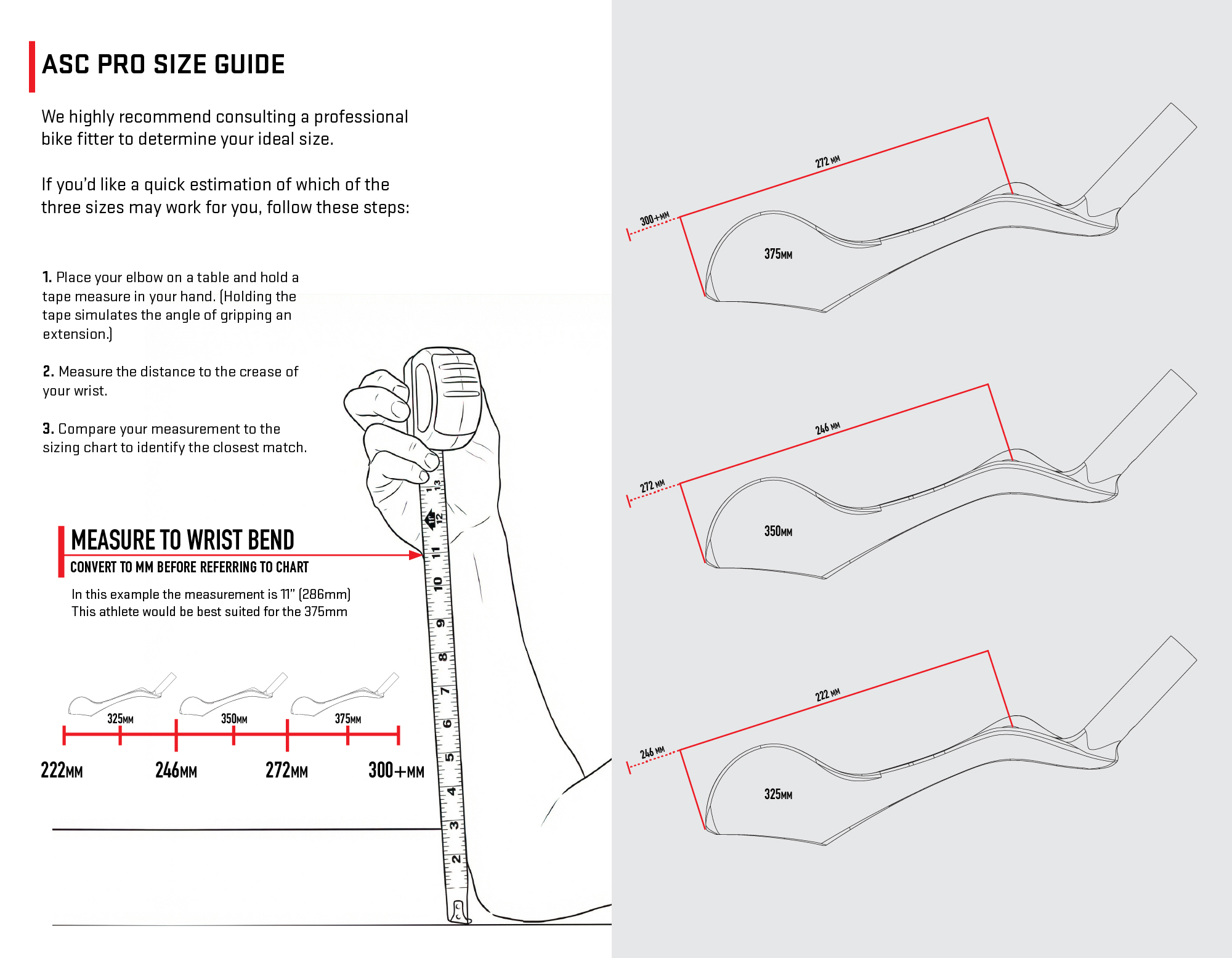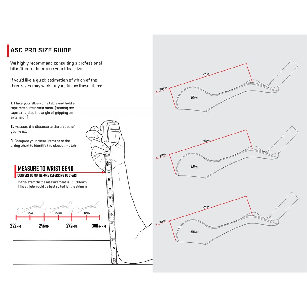 The ASC Pro offers comfort and aerodynamics comparable to a custom bar while retaining enough adjustability to allow position optimisation. The padding offers a consistent surface from elbow up to the wrist to maintain full contact with the riders arm.
