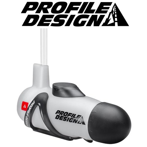 Aerodynamic, re-fillable front mounted bottle strategically positions hydration between the rider's arms for a hidden, sleek aerodynamic profile.