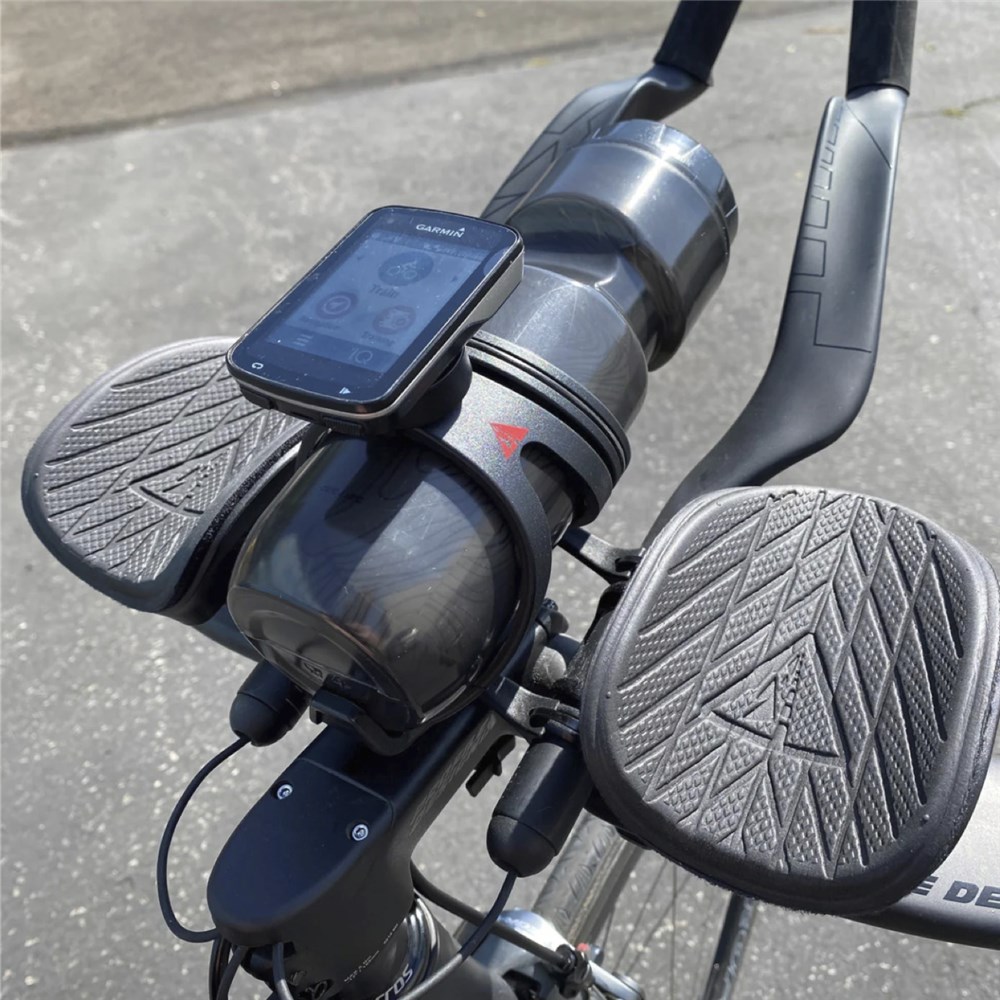 The mounting point is designed to hug the extensions just in front and behind of the aerobar bracket to suit shaped extensions like the ASC series. The HSA Mini can be reversed and flipped to give adjustability for the bottle location