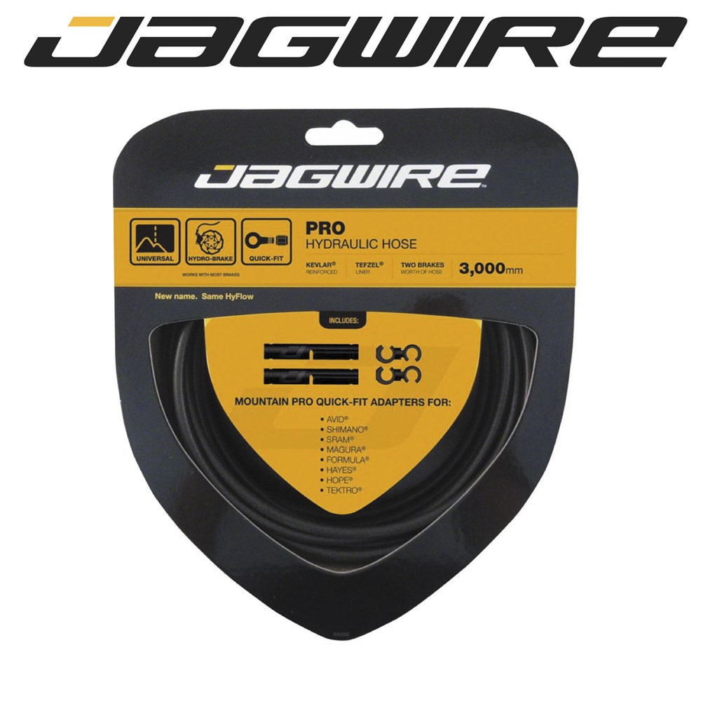 HyFlow® Quick-Fit hoses feature a pre-installed universal adapter at the caliper end of the hose. The universal adapter connects to the 0 degree Banjo fittings found in Jagwire’s Quick-Fit Fitting Kits designed for many popular systems. Cut the hose once to achieve your two desired lengths, then fit the lever hardware to the cut end and thread universal adapter end of the hose onto the Quick-Fit fitting installed on the caliper. Technology of this sort has been proven on motorcycle hydraulic systems for decades and the Quick-Fit caliper adapter brings it to the bicycle. One Quick-Fit hose and one Quick-Fit Fitting Kit is all you need for one bicycle.