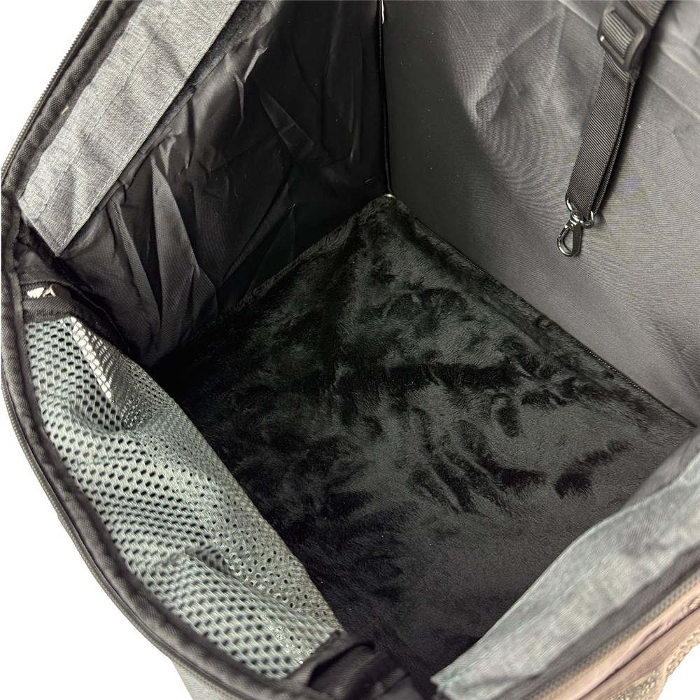 - Pet attachment clip inside carrier.