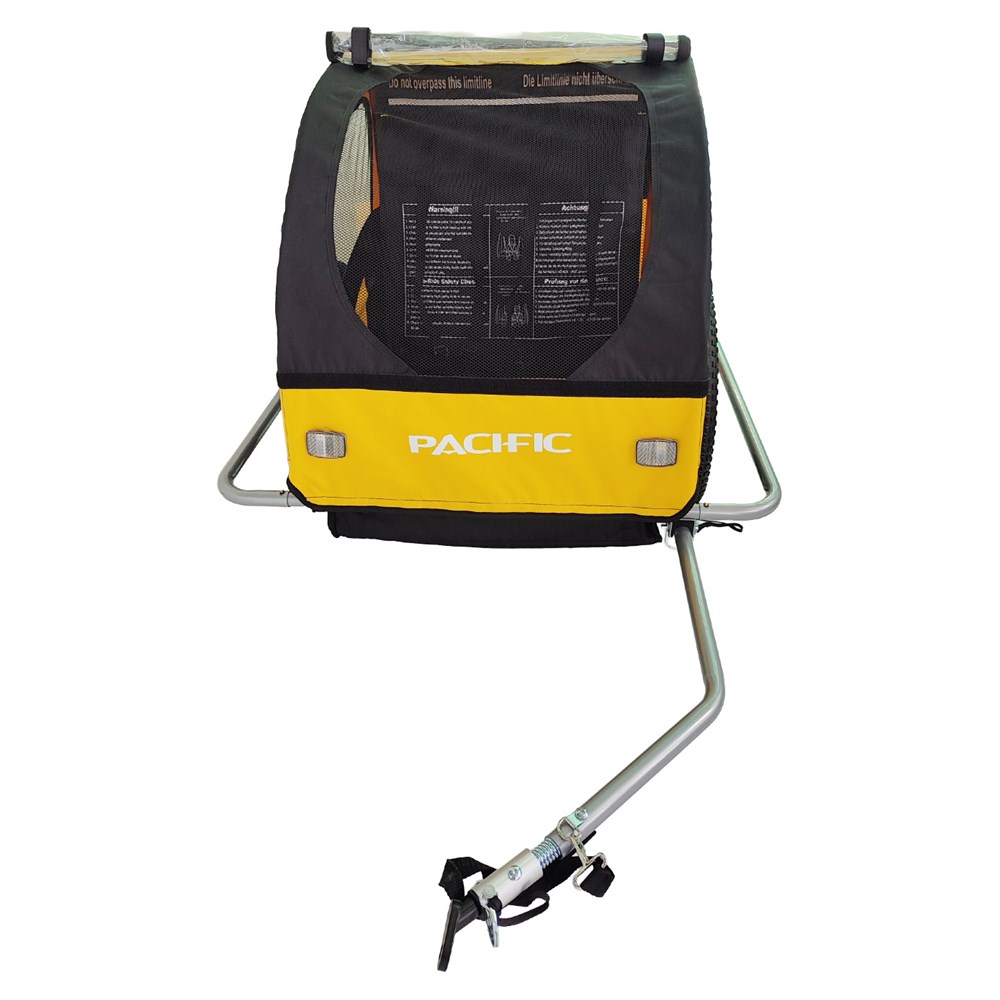 Easily attaches to bike via quick release hitch on bike rear axle (works with quick release or nutted axle).
