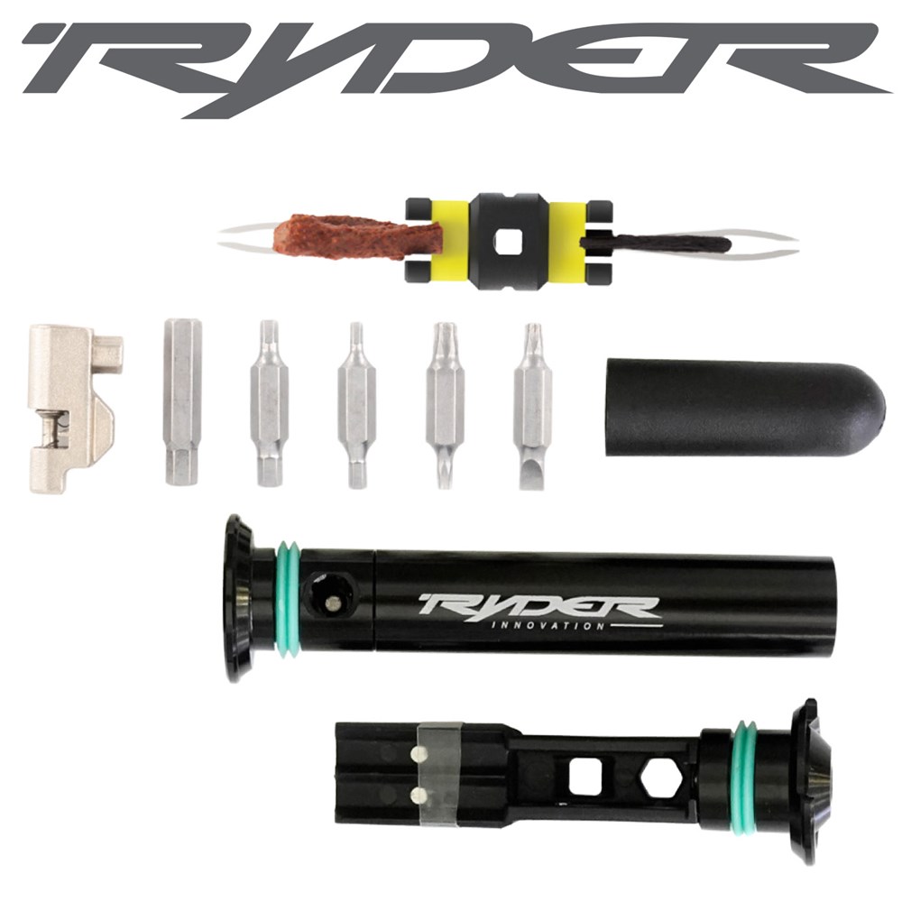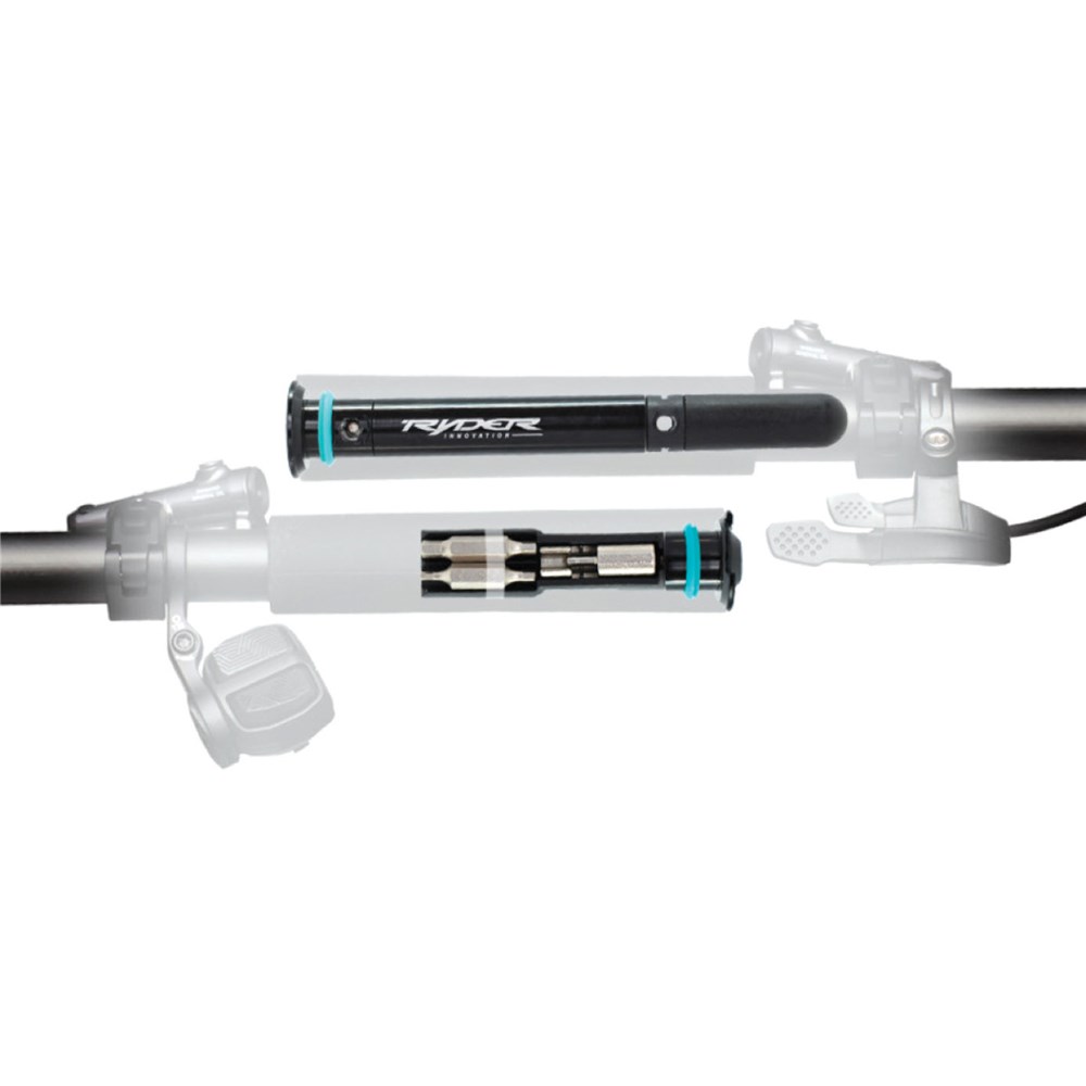 The In-Bar Groove tool features a chain tool, Slugplug Dual and a wide selection of common most-used tools on modern bicycles. Designed to store inside your handlebars, and doubles up as bar plugs.