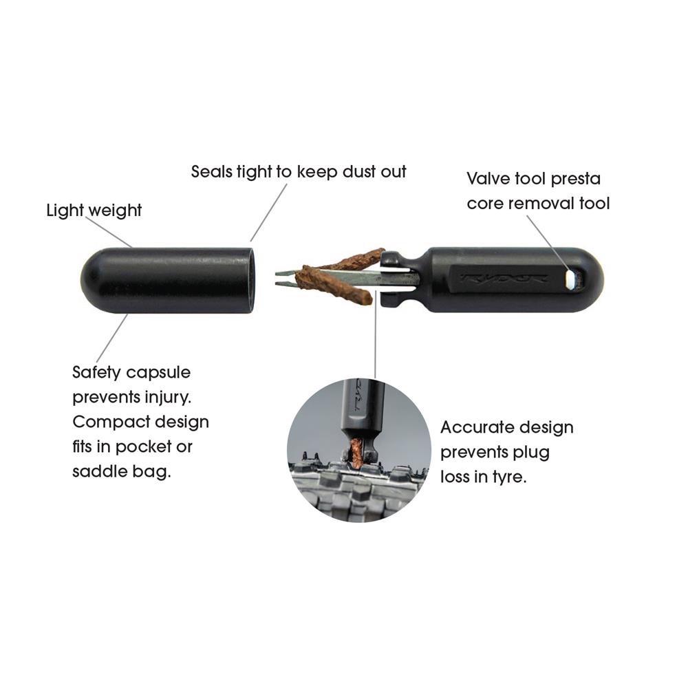 Individual kits comes with one tool, and a refill kit with a five pack of both thin and thick “slugs” to close different sized holes. The slugs are stored in the included envelope to keep them clean, and you can preload one into the tool and keep it safe with the cap in place.